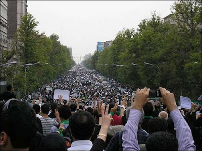 Uppdatering: På denna blogg hittar jag en uppskattning på 25 000 personer som beräknas ha demonstrerat i Tehran igår. Siffran är förstås väldigt osäker.