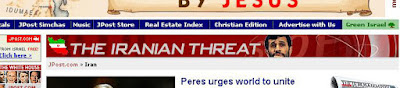 (Avdelningen ”Det iranska hotet” som samsas med mer vanliga avdelningar som inrikes och sport. Från israeliska Jerusalem Post.)
